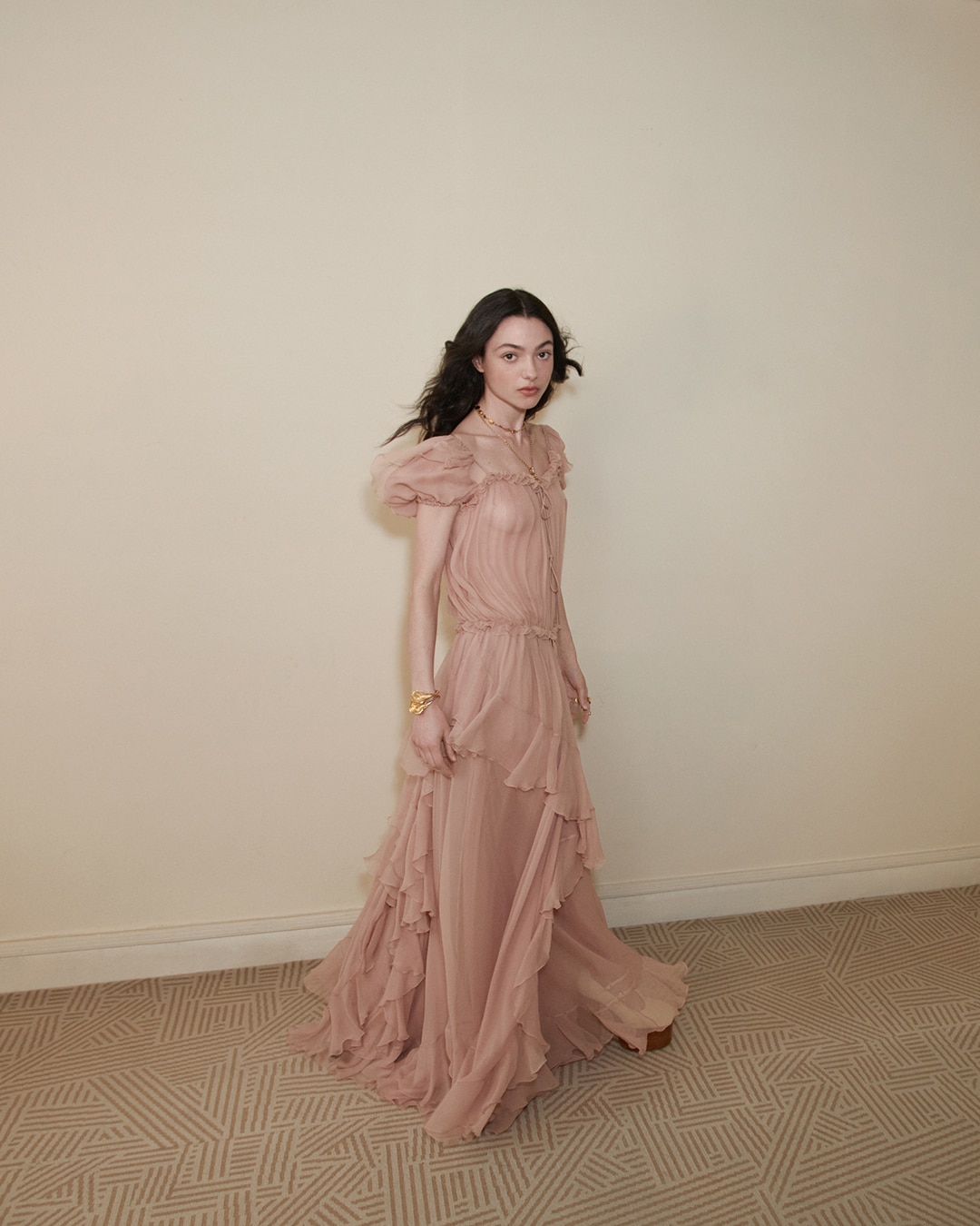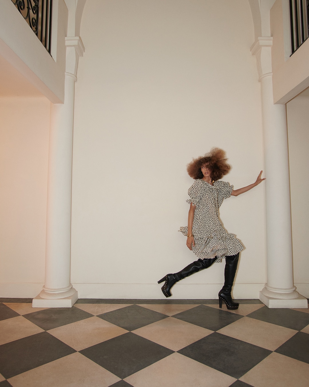 Embrace the festive mood with a selection of airy, colourful dresses and blouses, inflected with polka dots — complemented by luminous gold brass jewellery that reflects the Maison’s timeless spirit.