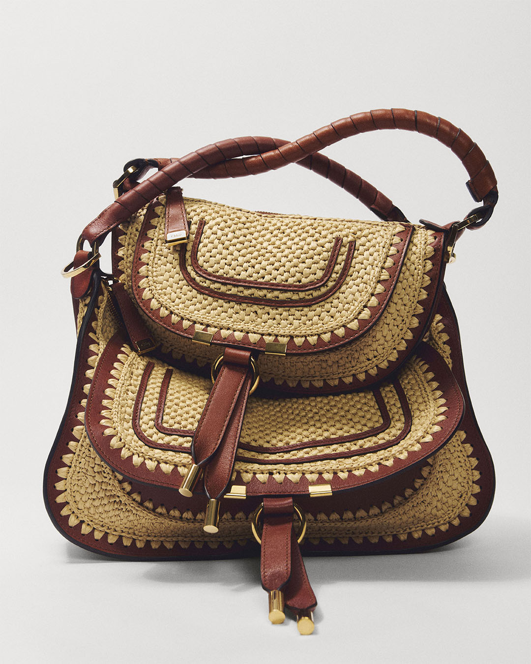 The iconic Chloé bags are now reimagined in mini, nano, and micro versions. The Camera bag, Chloé Spin, Paddington, and Horse Medal are crafted in smaller formats while retaining the Maison’s distinctive codes — from the metal coin clasp and saddle stitching to logo embroidery and gold-tone brass details.