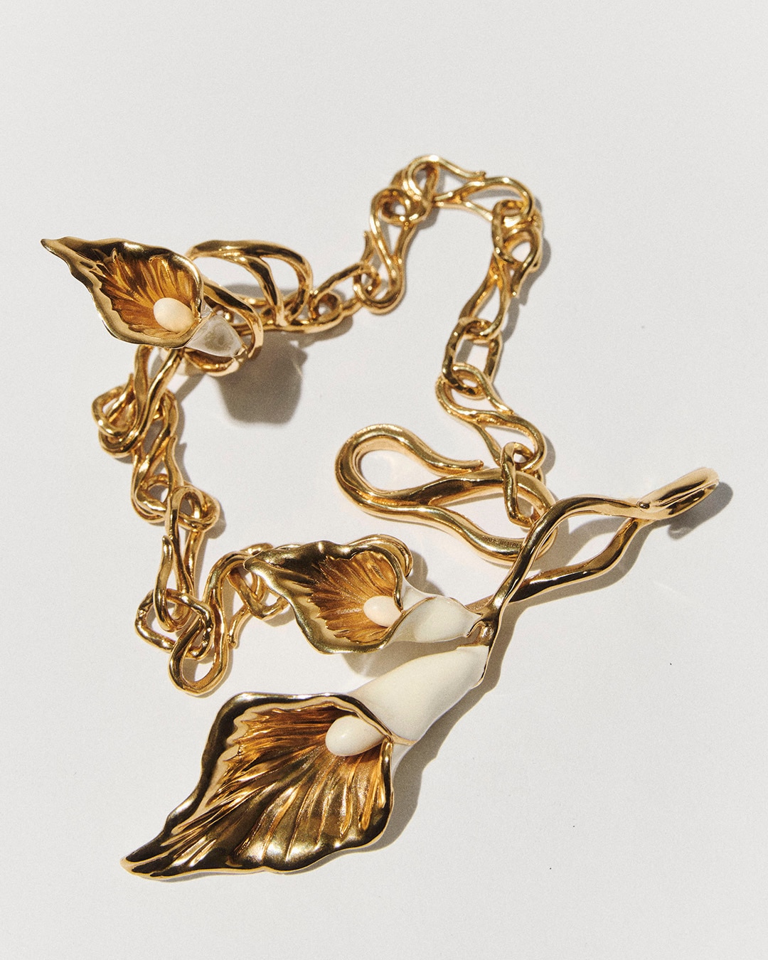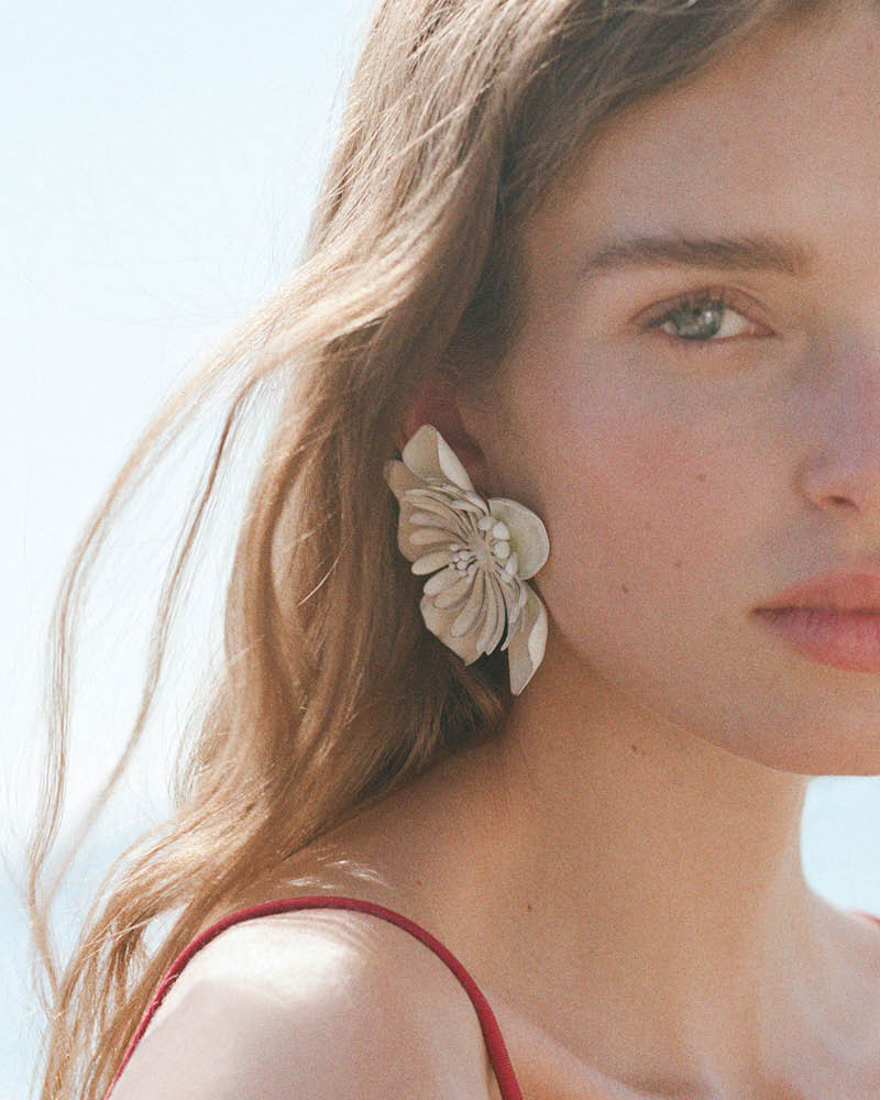 Chloé jewelry ranges from bold statement cuff bracelets to delicate earrings and timeless pendant necklaces, balancing modernity and refinement. Updated each season, the collection embraces a natural spirit through baroque freshwater pearls, semi-precious stones, hand-blown glass, leather trims, and deadstock silk ribbons. Polished gold brass infuses each piece with a fine jewelry spirit that elevates the Maison’s artful craftsmanship.