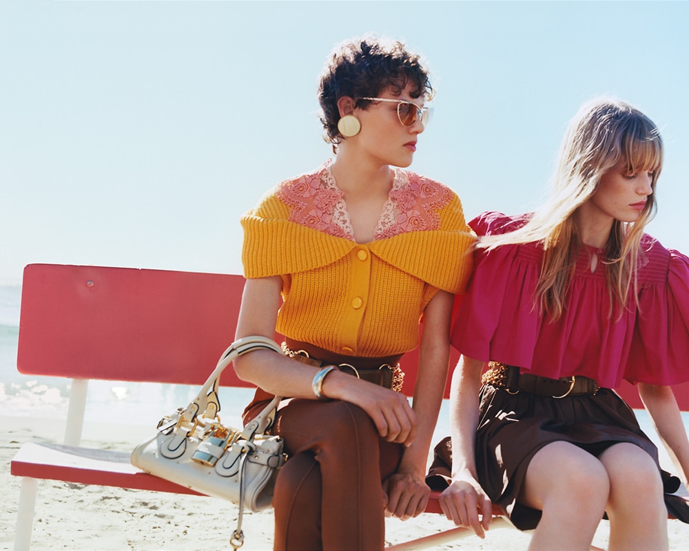 Spanning all seasons, Chloé’s knitwear encompasses breezy crop tops and enveloping sweaters alike. Long skirts and tank dresses play on the Maison’s recognizable flou aesthetic, while side cut-outs and flouncy, flared or gathered sleeves add romantic detail. Lower-impact wool and recycled cashmere further Chloé’s commitment to reduce our environmental impact.