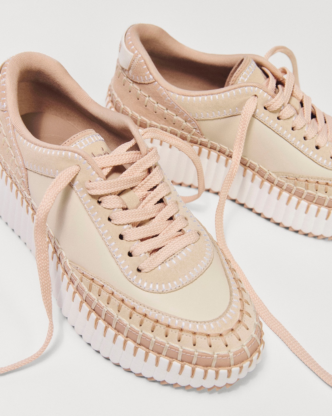 The Chloé sneaker collection reinvents sporty style with a touch of femininity. The Nama are distinguished by their delicate hand-stitched detailing, textured sole, and responsible design, while the Chloé Kick combines dynamic style with contemporary elegance. In recycled mesh, leather, or crochet, Chloé sneakers combine comfort and modernity.
