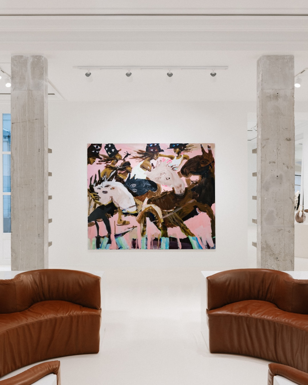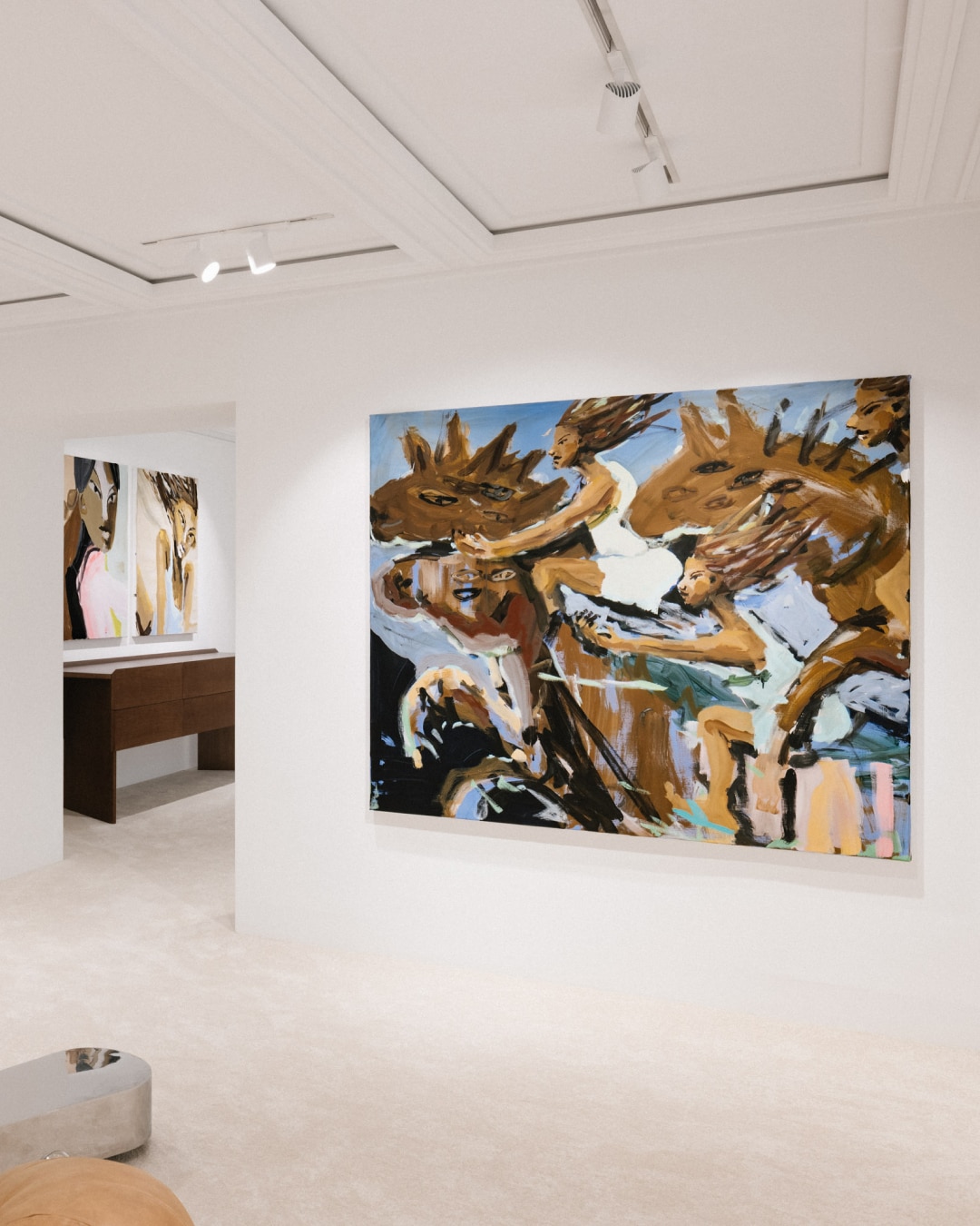 Eight paintings, seven existing and one exclusively commissioned by Chloé, are on view at the Chloé Paris flagship store, a visual conversation coinciding with the first collection of Chemena Kamali for the house.