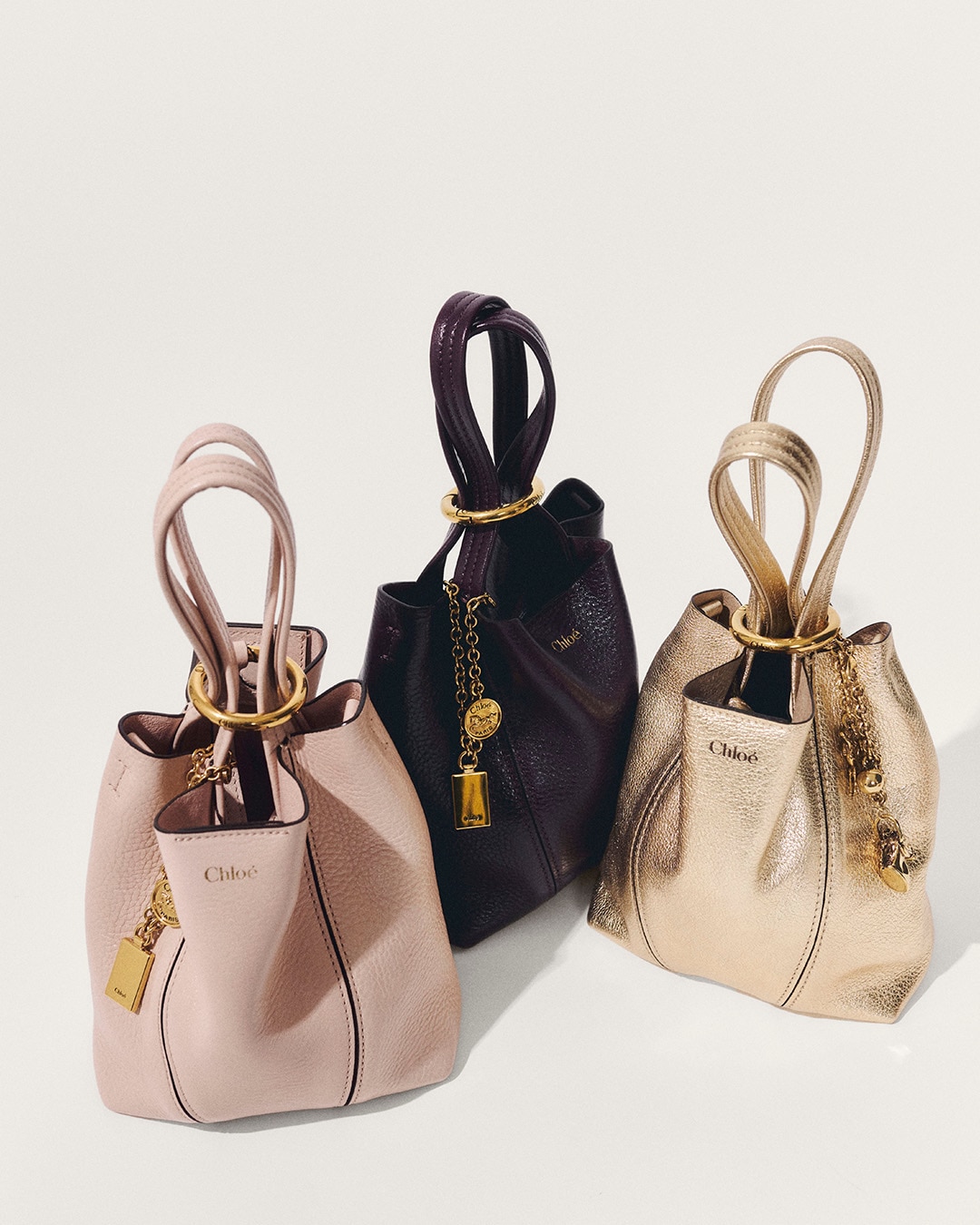 Instantly recognisable yet constantly evolving, Chloé bags bring the Maison’s hallmark elegance to a range of styles. The Bracelet bag elevates a supple, rounded shape with bi-colour hardware, while the Camera bag features multiple pockets and buckles for a functional aesthetic. The iconic Marcie's saddle stitches signal equestrian appeal, and Woody pairs a minimalist silhouette with the Chloé logo for everyday chic. Roomy shoulder bag, versatile tote bag or evening clutch: our leather goods collection has it all, and is continuously reinvented to complement the Maison’s most recent ready-to-wear looks.