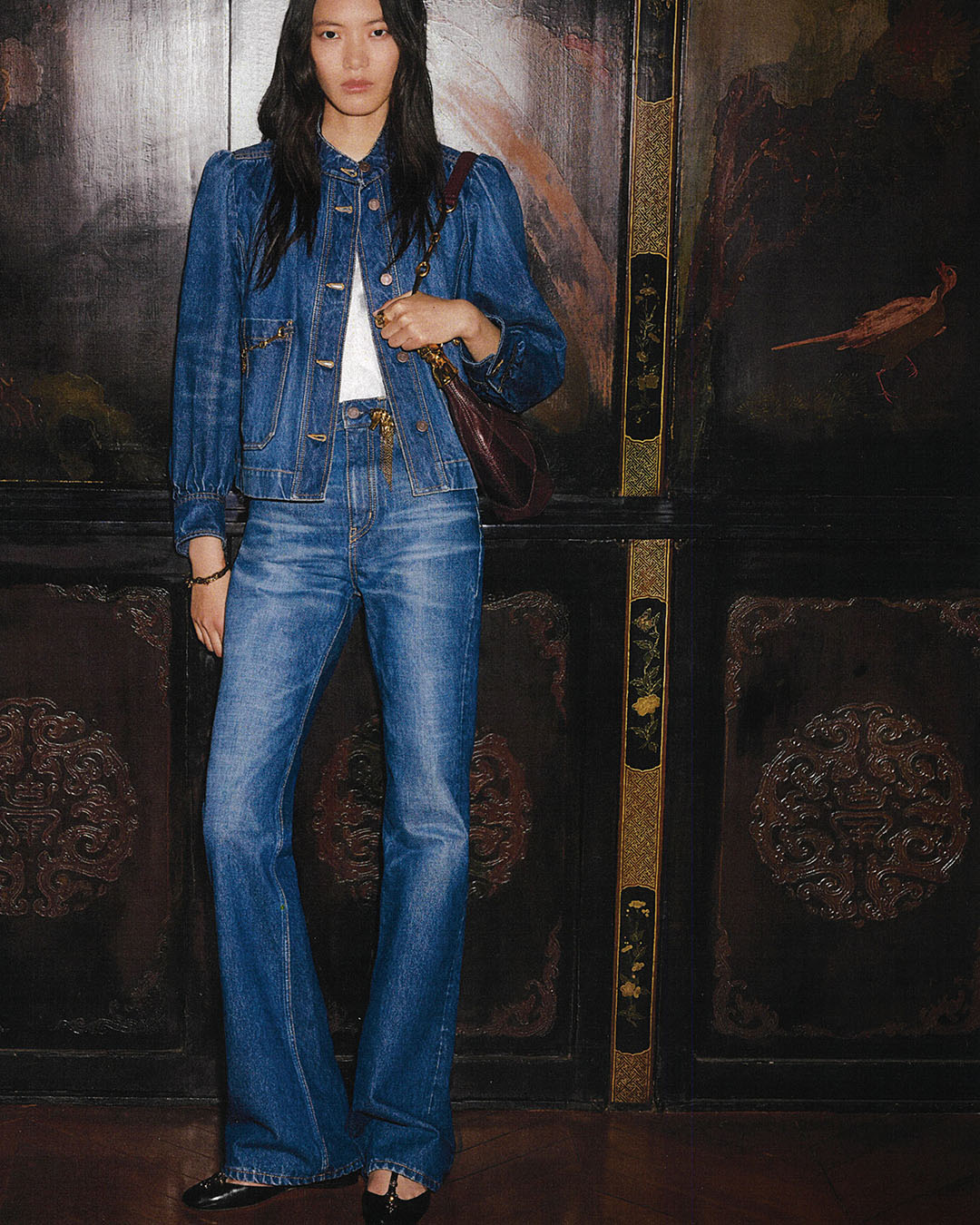 Embodying the Chloé spirit, the House's denim combines relaxed style with a responsible approach. Jeans, jackets, skirts, and shorts are available in blue or white denim, enhanced with signature details and assertive cuts. Made from organic cotton, Chloé denim pieces reflect the House's ongoing commitment to more sustainable fashion.