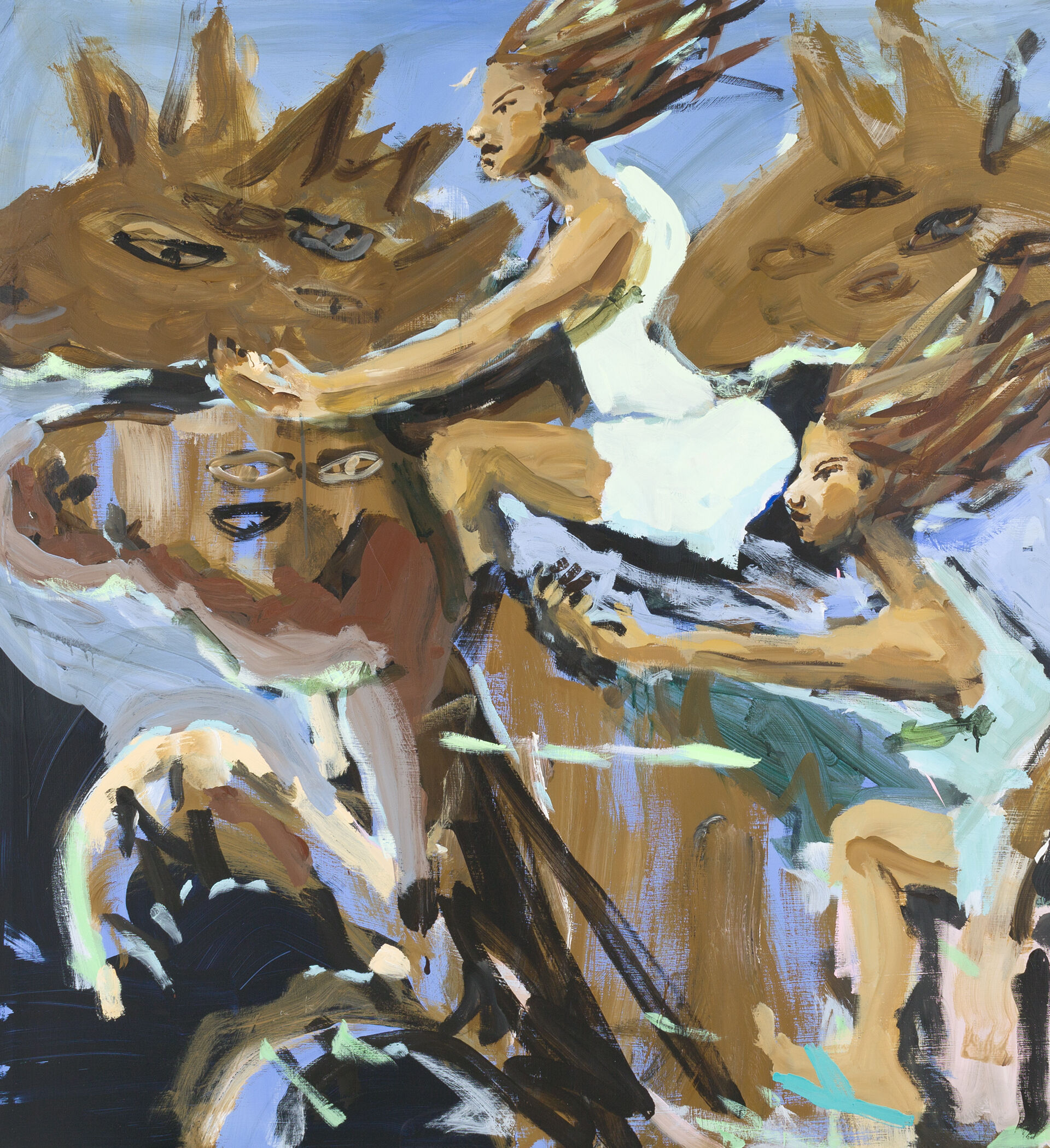 Kjærgaard works in painting, occasionally sculptural objects and installation. Her large scale paintings depict subjects of female liberation — women who tore off the corset to ride a bike, play tennis or music. Women who dare living their own lives, experiencing life from the inside out, women seen through the female gaze.