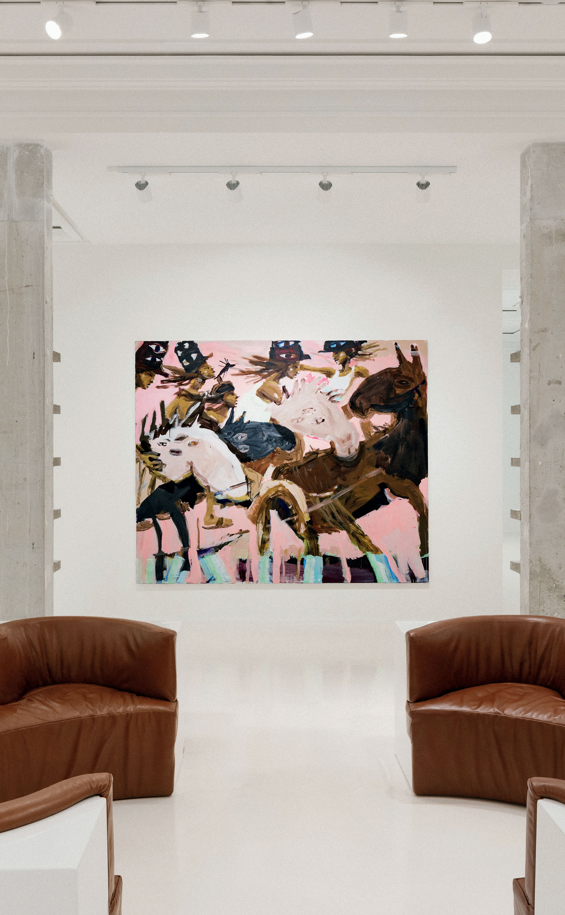 Mie Olise Kjærgaard is an internationally exhibited Danish artist. Eight paintings, seven existing and one exclusively commissioned are on view at the Chloé Paris Saint Honoré flagship, a visual conversation coinciding with the first collection of Chemena Kamali for the house.