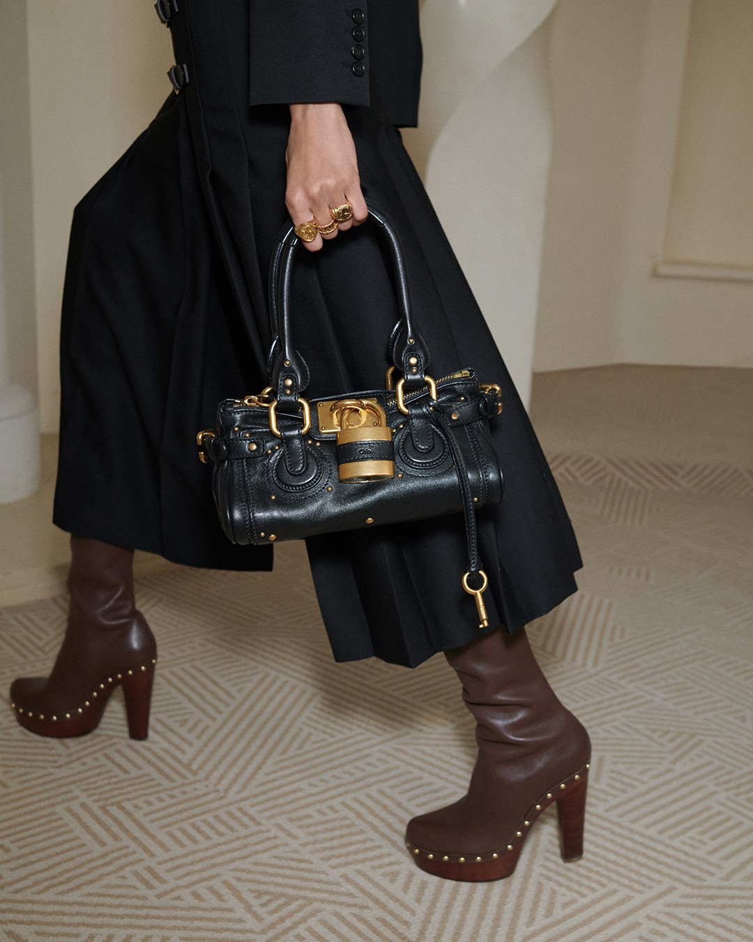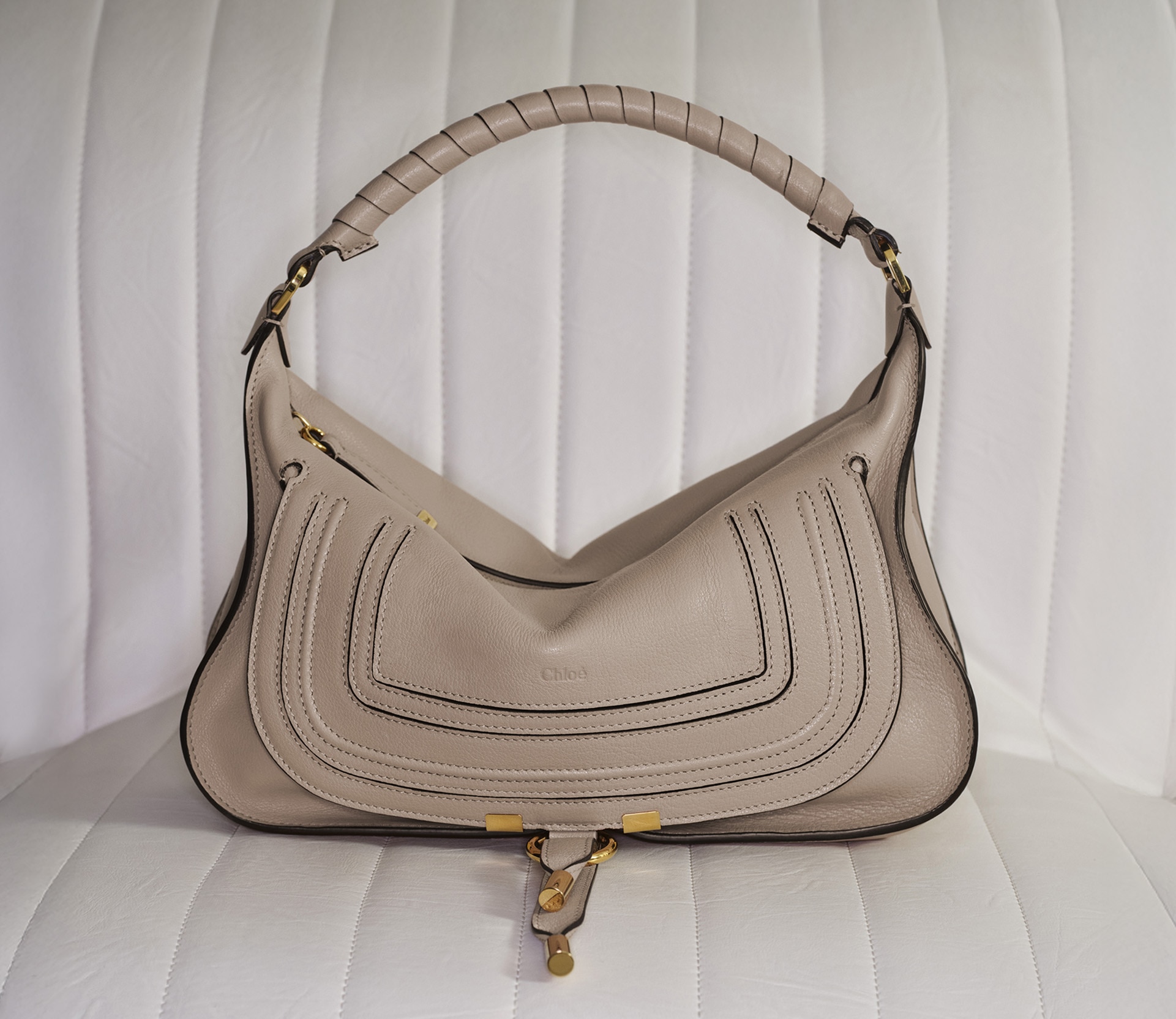Instantly recognisable yet constantly evolving, Chloé bags bring the Maison’s hallmark elegance to a range of styles. The Bracelet bag elevates a supple, rounded shape with bi-colour hardware, while the Camera bag features multiple pockets and buckles for a functional aesthetic. The iconic Marcie's saddle stitches signal equestrian appeal, and Woody pairs a minimalist silhouette with the Chloé logo for everyday chic. Roomy shoulder bag, versatile tote bag or evening clutch: our leather goods collection has it all, and is continuously reinvented to complement the Maison’s most recent ready-to-wear looks.