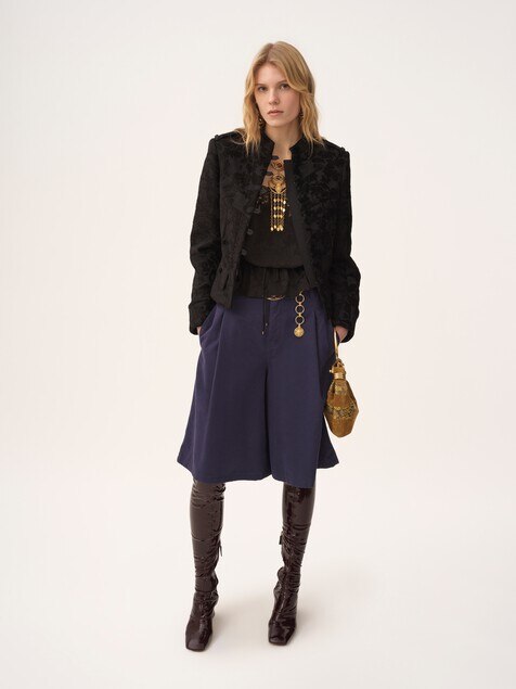 Entrust this garment to a specialist for mild cleaning with tetrachloroethylene and solvent F, ensuring its delicate nature is maintained with the most care.