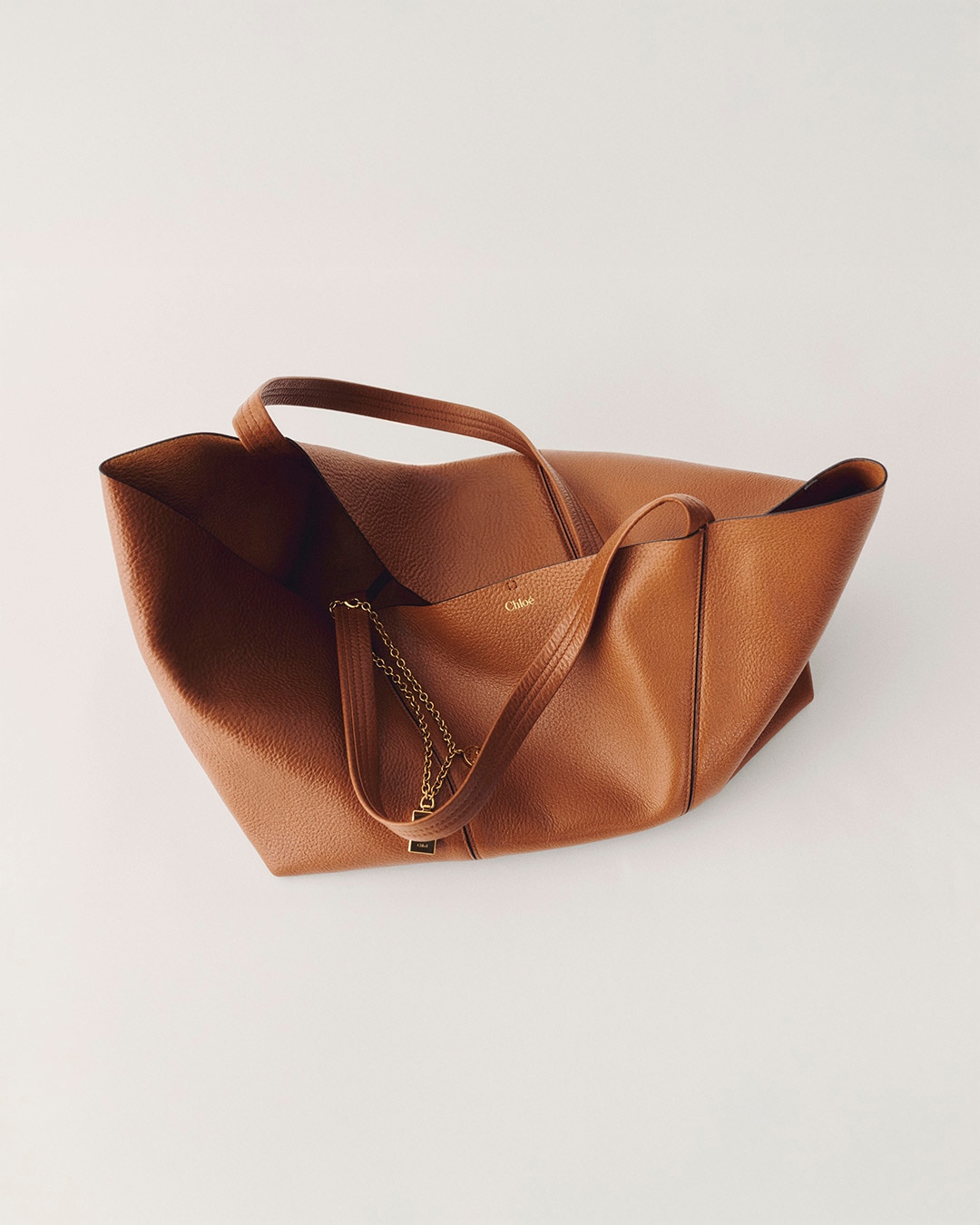 Un toque moderno para una silueta clásica. El bolso tote de cuero Chloé Spin recibe su nombre por la función única del diseño: gire el bolso para abrirlo totalmente o deslice las asas dentro del anillo con grabado Chloé para llevarlo de forma diferente. Una cadena colgante con las emblemáticas medallas Chloé y el caballo caracteriza los modelos de esta línea, desde los bolsos tote para el día a día a las carteras con solapa y cadena.