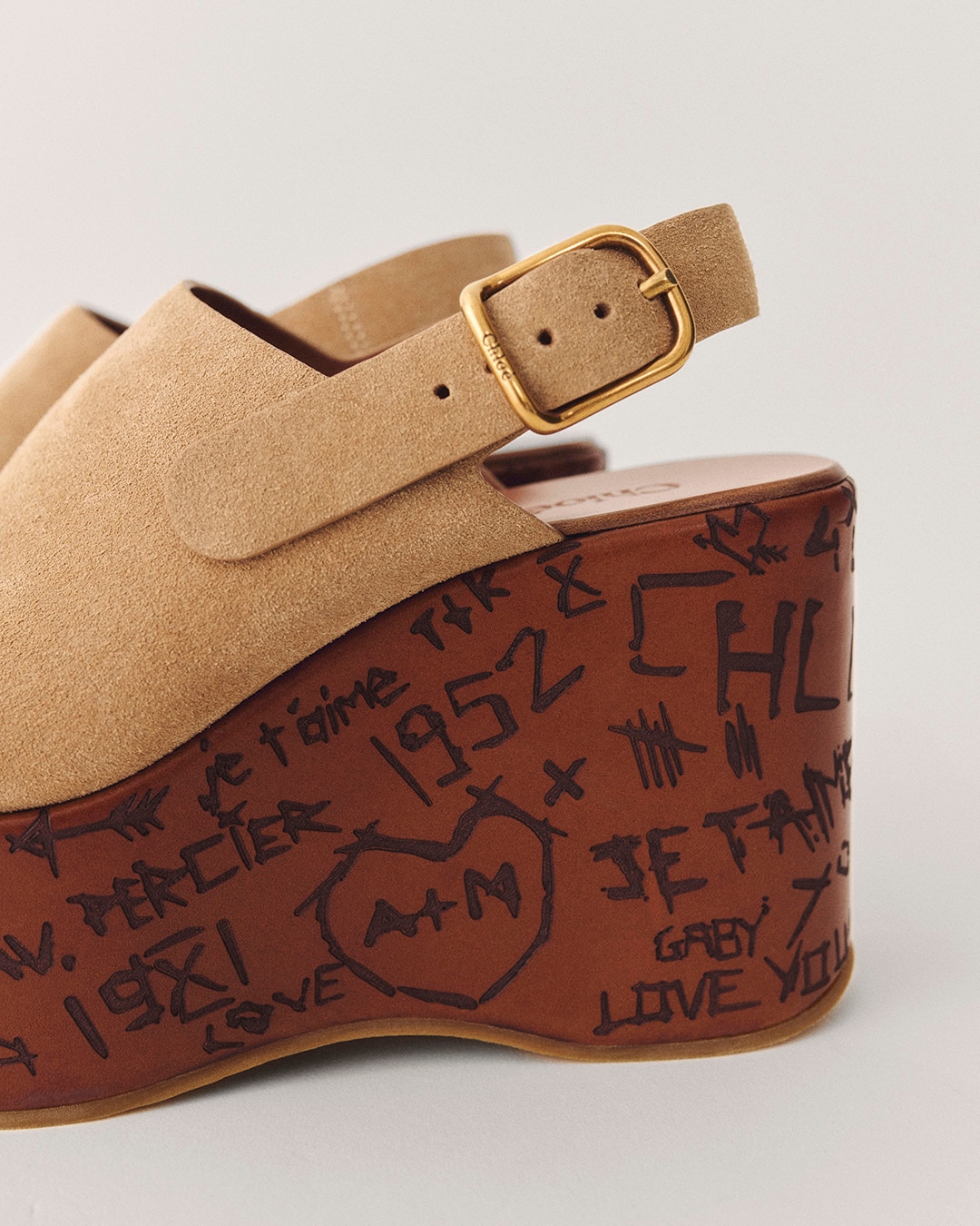 Las sandalias Chloé encarnan una actitud elegante y segura, perfectas para todas las ocasiones. Las sandalias de cuña Maxime se distinguen por su plataforma grabada con efecto madera, impregnada de la herencia de la Maison. Para un toque más lúdico, descubre las sandalias Jelly que capturan el espíritu veraniego, perfectas para la playa o la ciudad.