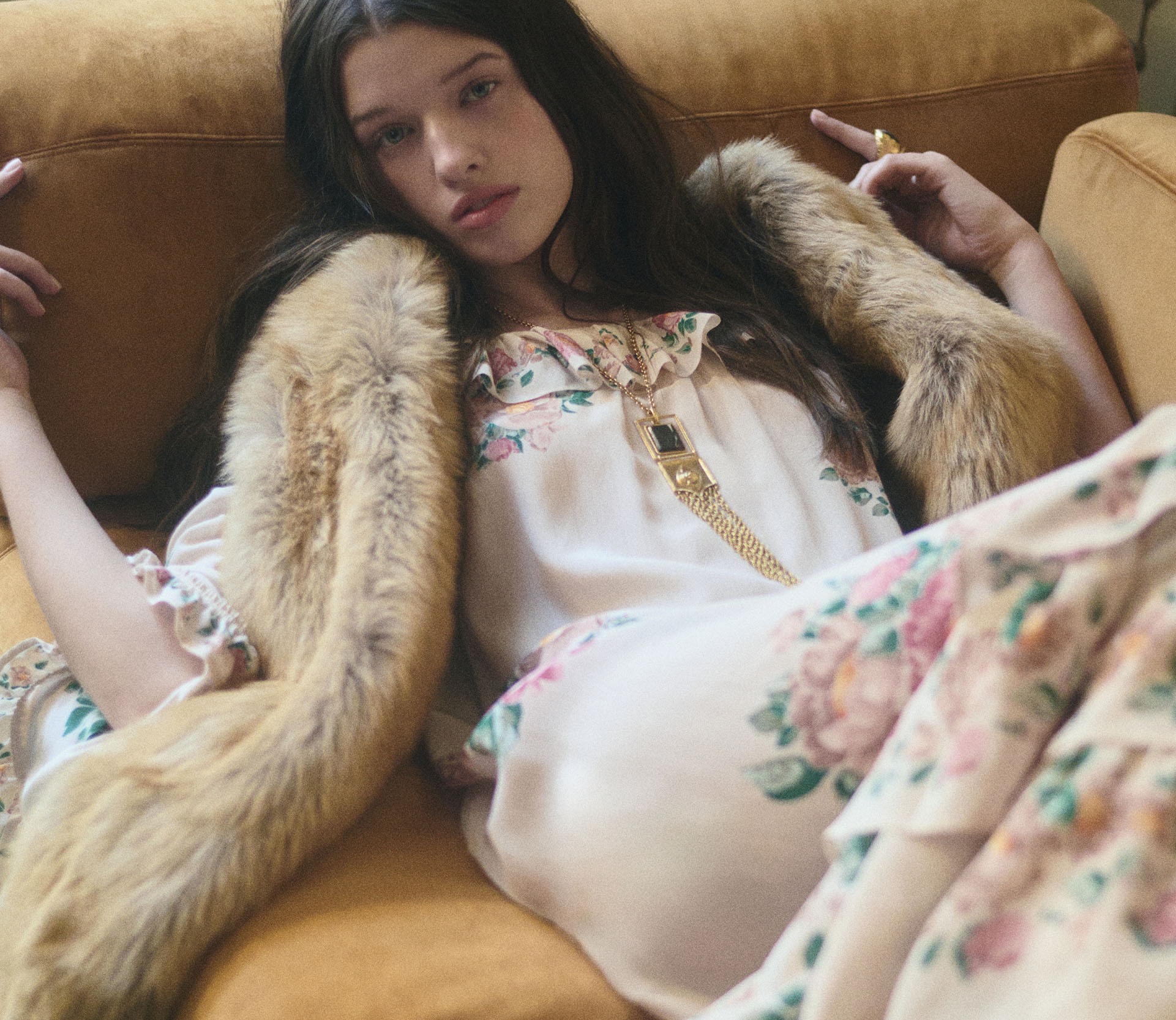 La collection présente des silhouettes drapées estivales, confectionnées avec la précision de la haute couture et ornées d'imprimés floraux aux couleurs vives. Elles flattent la silhouette par leur volume et leur mouvement.
