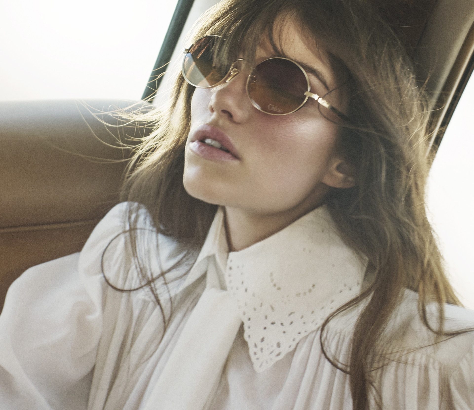 Réinterprétation moderne et raffinée des lunettes aviateur classiques, les solaires Aly évoquent l’authenticité et l’optimisme de la femme Chloé. Les montures sont réalisées en métal doré brillant, tandis que les verres se déclinent dans des teintes dégradées chaudes, ocre ou pastel, pour vous accompagner les journées ensoleillées.