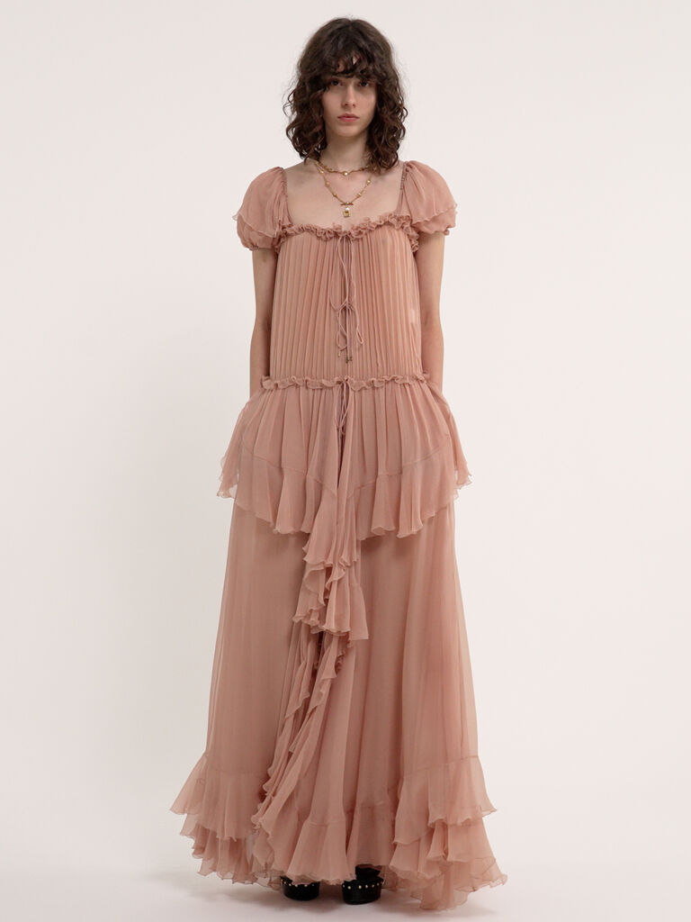 Capturez l’esprit des fêtes avec notre sélection de robes et de blouses aériennes aux teintes lumineuses, sublimées par des motifs à pois. Complétez votre silhouette avec des bijoux en laiton doré, reflets de la grâce intemporelle de la Maison.