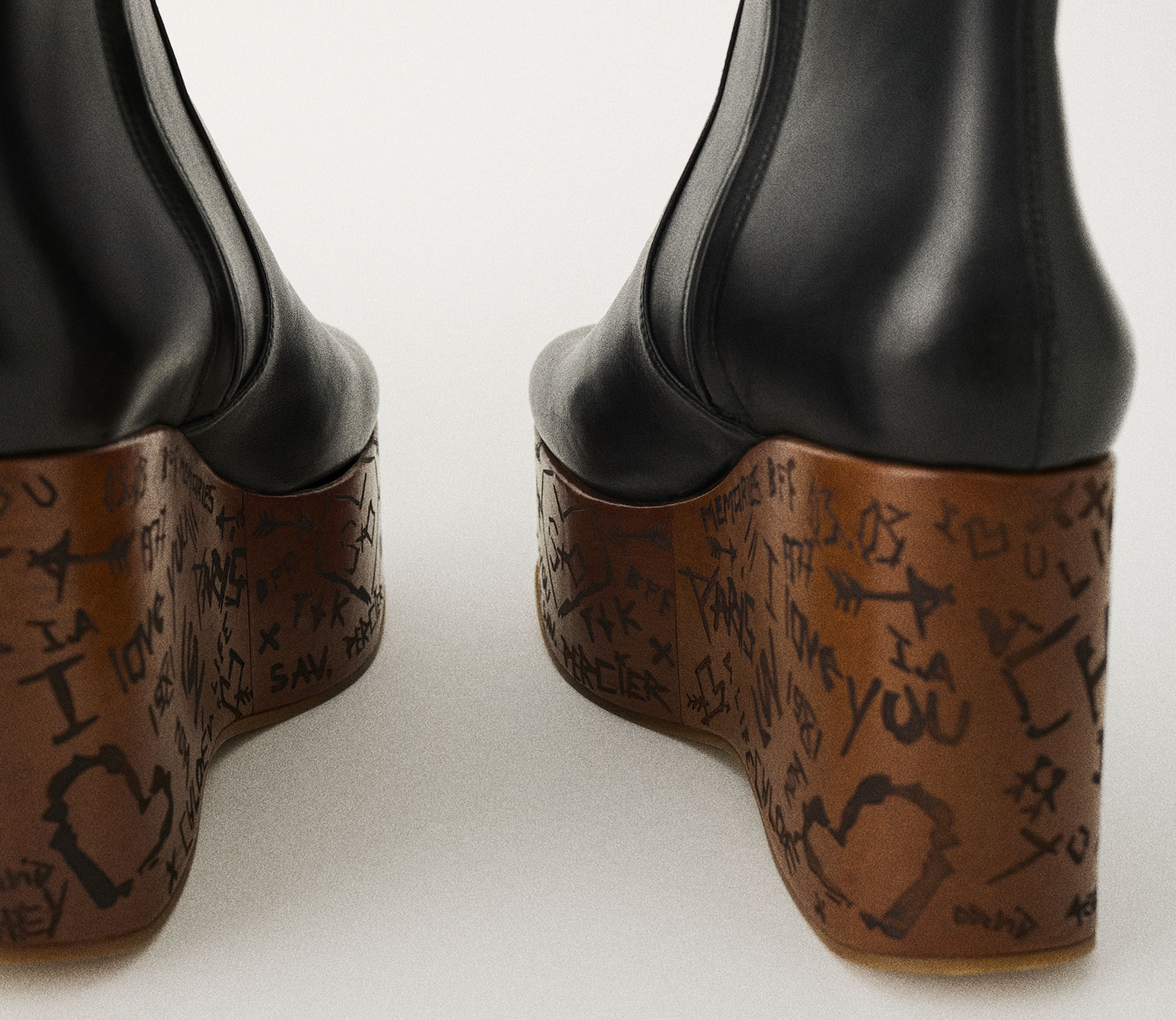 舞い上がるクリスクロス レザープラットフォームサンダルは、快適性も自信も約束します。懐かしい感覚が、紛れもない70年代のスピリットや、ソールに命を吹き込む遊び心あふれる刻印をサポートし、記憶すべきクロエのメモは、手作業で木に刻んだ若さのしるしからインスピレーションを得ています。